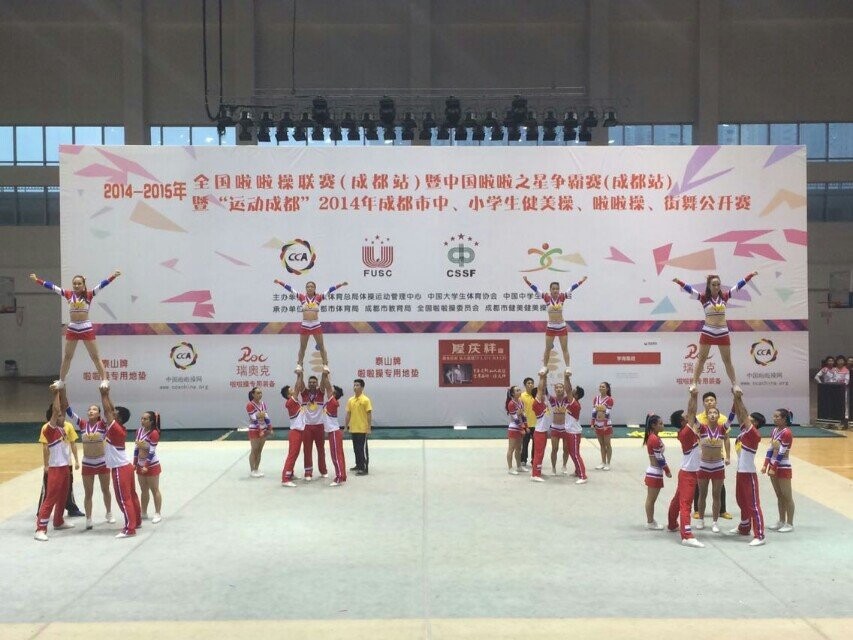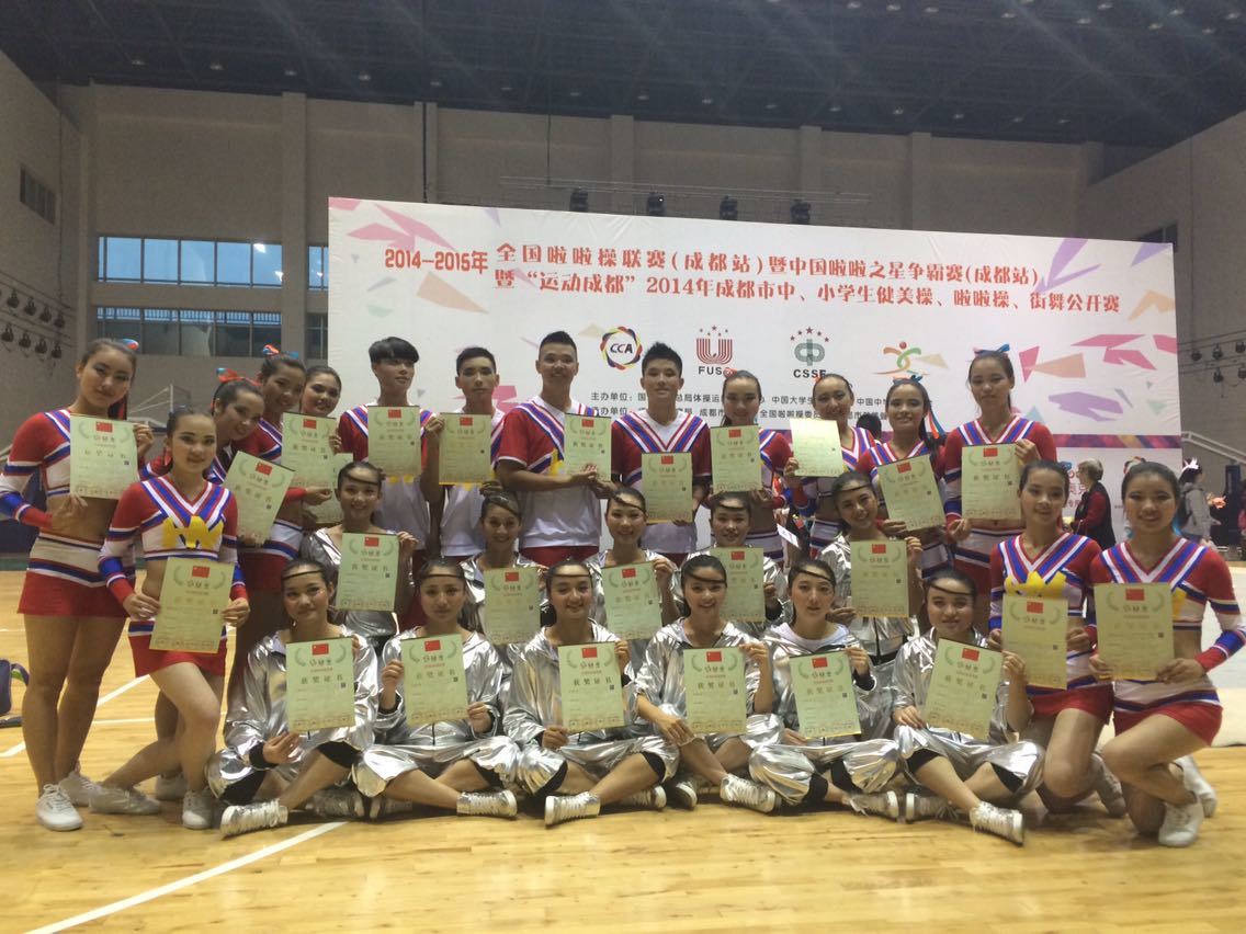 2014年10月25日至26日2014-2015年全国啦啦操联赛(成都站)在成都中医药大学(温江校区)隆重举行。我校万象城娱乐awc线路两支参赛队soul team和hot team唐绪明老师带领下参加了比赛。两支队伍经过顽强拼搏,分别以第二名的优异成绩进入了决赛。