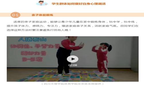 在居家抗疫期间,为了融洽家庭亲子关系,活跃家庭气氛我自编了《居家亲子运动操》。此套亲子操在我校职工中获得广泛赞誉,还被“达州教育”微信公众号和“营山县城守一小”微信公众号转载和推广,引起较好的社会反响。