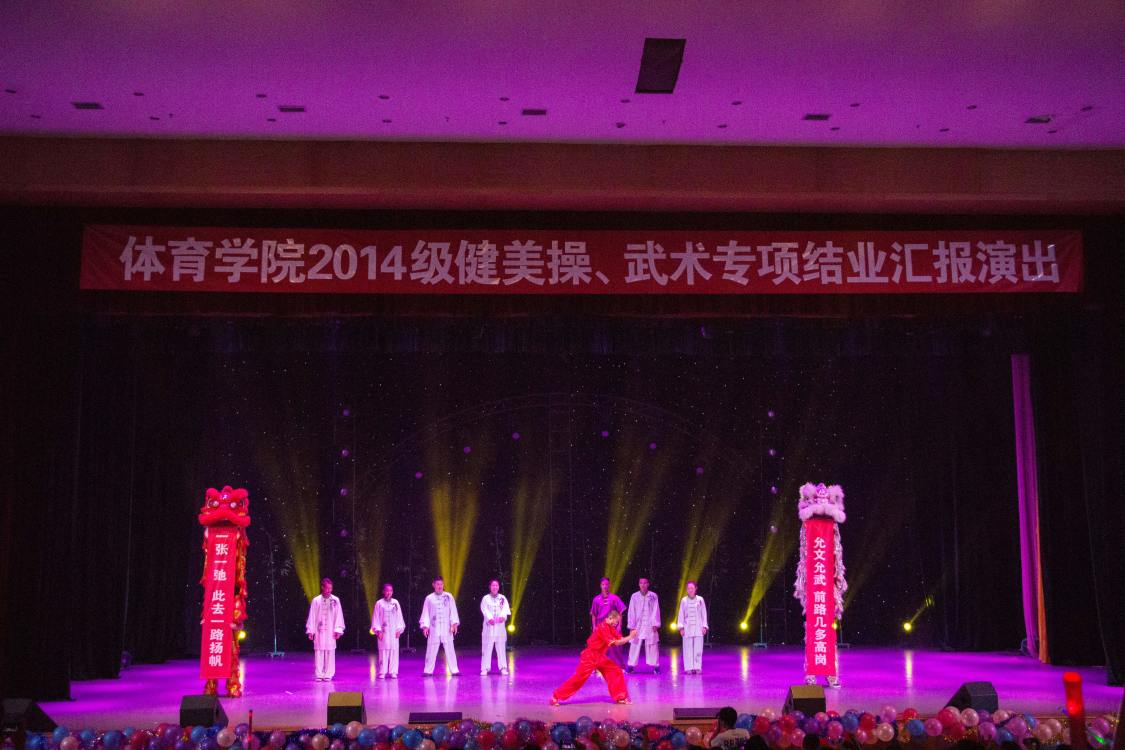 历经两个月的紧张筹备,学院2014级健美操、武术专项结业汇报演出于16日19:00在音乐厅隆重举行。学生处(部)处长陈官章、团委书记于贵、人事处处长张皓、万象城娱乐awc线路2007届毕业生及我院的领导和老师们莅临晚会现场,同时各二级学院学生干部代表也应邀出席。晚会围绕“专业结业汇报”为主题,有极具专业特色的健美操、排舞、啦啦操、街舞、跆拳道、武术、舞狮等节目形式,整场晚会高潮迭起、精彩纷呈。
