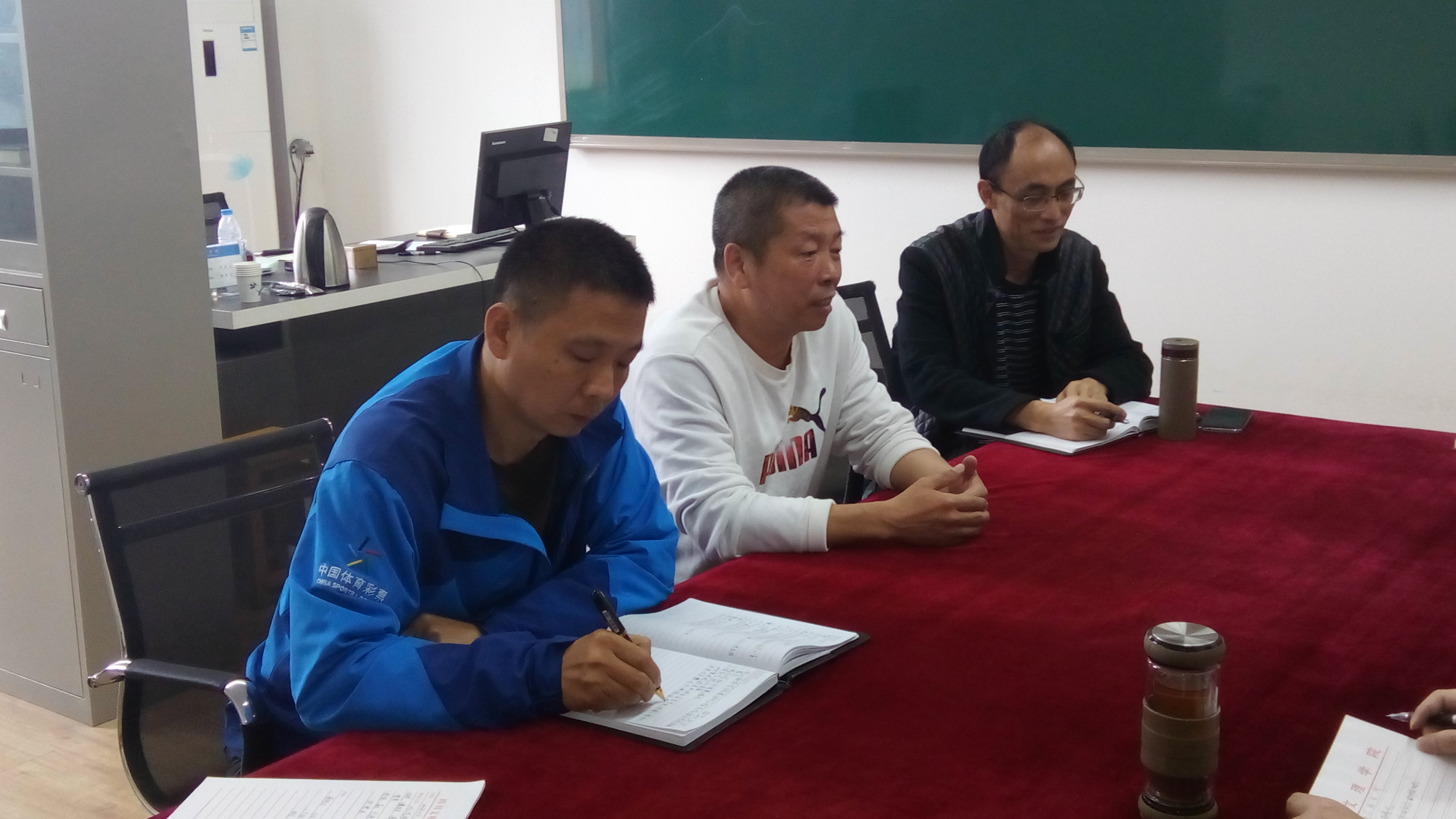 首先,董立院长代表学院党政对王斌院长一行的到来表示热烈的欢迎,他就我校发展的历史沿革及万象城娱乐awc线路的发展历程做了全面系统的介绍,他谈到:万象城娱乐awc线路始终坚持教学与竞赛并重的指导思想,近些年,已经取得不错的成效,在学生就业及对外竞赛中已经体现出来。副院长陈碧述就我院教学工作的运行及改革情况作了简要的介绍。其次,王斌院长介绍了内江师范学院万象城娱乐awc线路的发展概况,他重点介绍了微课堂平台的创建和峨眉武术文化基地建设方面的思路和经验。