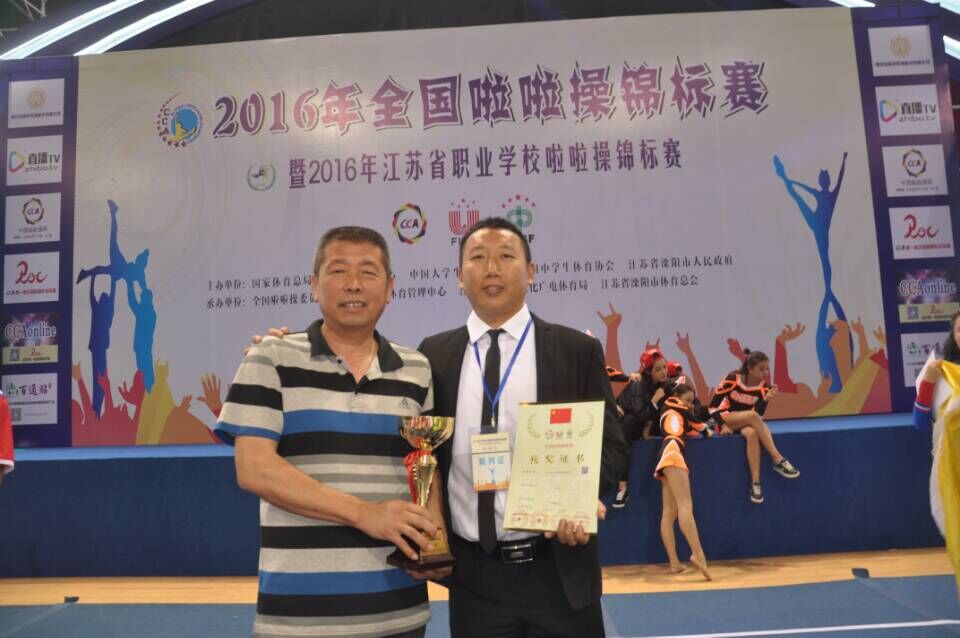5月19日至23日,“2016年全国啦啦操锦标赛暨2016年江苏省职业学校啦啦操锦标赛”在江苏溧阳奥体国际花园体育馆隆重举行。我院36名学生在董立院长和唐绪明老师的带领下参加了比赛,并在两个比赛项目中荣获了第一名。