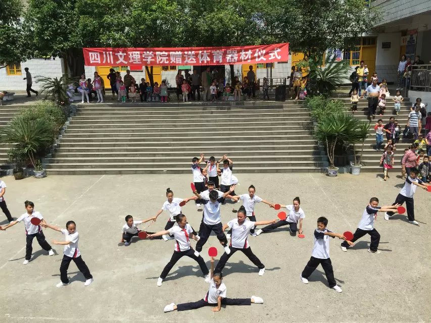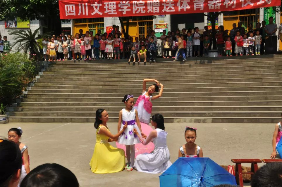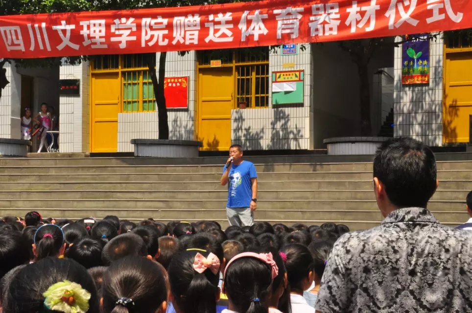 宣汉县石铁中心校地处大巴山深处,四周群山环抱,一条小河蜿蜒穿过。在他们美丽的校园举行了热烈的捐赠仪式,学生在烈日下表演了自编自导的文艺节目和大课间操。本次捐赠由波力体育用品公司提供,有篮球、排球、跳绳、羽毛球、乒乓球、武术器材等。在捐赠活动后,我院领导与该校领导进行深入交流,详细了解了该校办学条件、体育设施配置、体育教学现状等。该校在养成教育、感恩教育、人文素质、艺体素质等方面办出了自己的特色。最后对我院2011届毕业生向珏璞进行了回访,对他两年来在该校的表现很满意。用人单位对我院培养的学生总体评价良好,反馈的意见对我院进一步完善人才培养方案提供了依据。