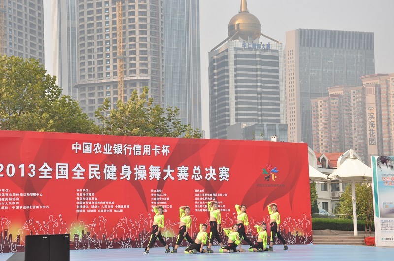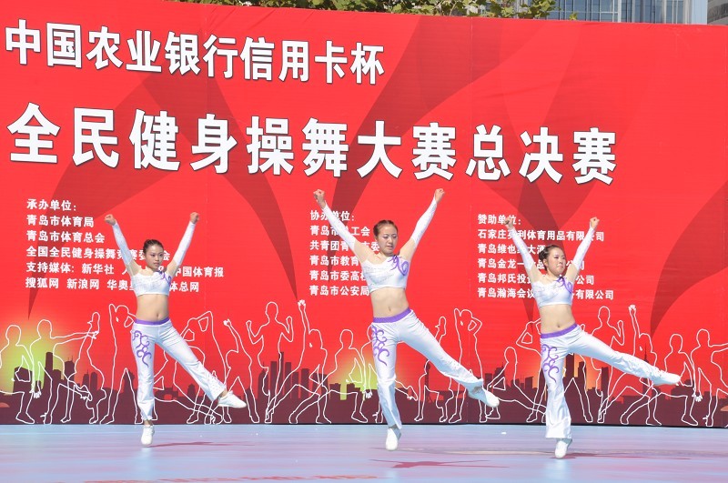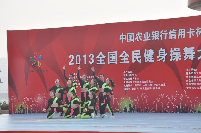 10月9日,由国家体育总局与中国农业银行联合推动的“中国农业银行信用卡杯”2013年全国全民健身操舞大赛总决赛在青岛五四广场拉开帷幕。此次比赛包括时尚健身操舞、时尚健身操、街舞、广场健身操和民族健身操舞五大类,吸引了全国各赛区四千多名选手参加。我校2012级健美操队在万象城娱乐awc线路董立教授及冉卫东老师的带领下参加了此次比赛。