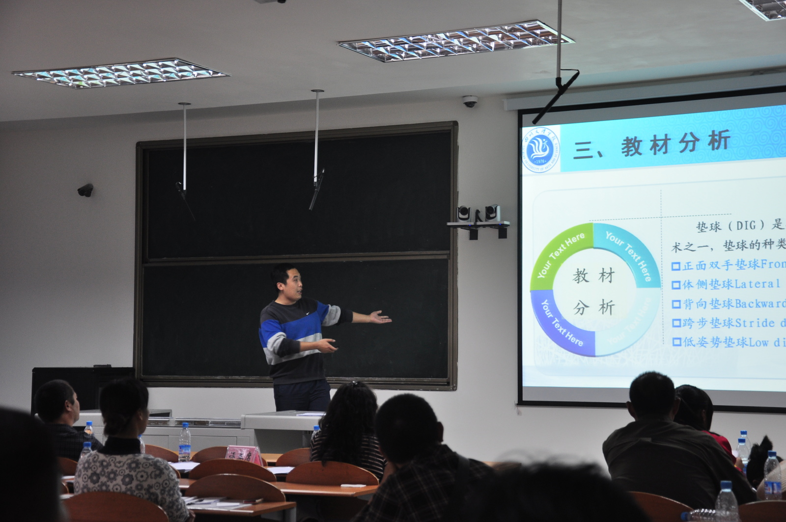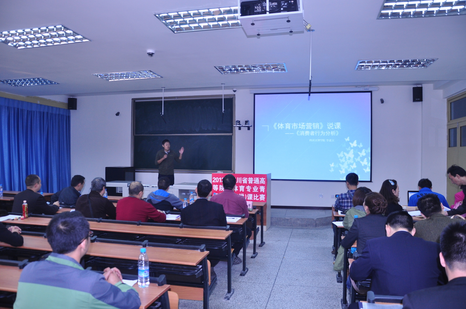 本次全省体育教师说课比赛旨在进一步加强高校青年教师队伍建设,促进校际体育工作的交流,提高体育专业教育教学质量。四川省设置体育专业的24所普通高等学校80余名教师参赛。参赛教师分术科、学科、公体三组比赛,采用20分钟现场说课评比的比赛方式进行。万象城娱乐awc线路认真组织,通过先期进行院内比赛,精心选拔了樊永强、孙亮亮和李进文三位教师参赛。我院教师说课材料准备充分,课堂教学目的明确,教学思路清晰,教学过程设计合理,语言表达准确精炼,教学方法独特新颖。我院选手们流畅的讲解,优美的板书,端庄大方、挥洒自如的仪态,展现了过强的教学技能和教师风采,赢得了参赛同行们和专家评委的连连称赞。