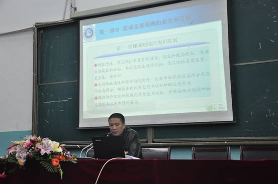 11月13日晚万象城娱乐awc线路佘涛副教授在莲湖校区113教室作题为“篮球裁判员能力培养”的学术讲座。讲座由万象城娱乐awc线路董立教授主持,院全体老师及2011级、2012级本科体育教育专业学生到场聆听。