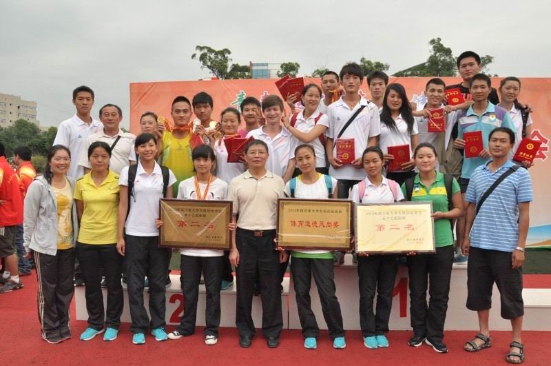 在本届四川省大学生运动会中,我校运动健儿不畏强敌、顽强拼搏,奋力争先,最终摘得8枚金牌、 4枚银牌、 6枚铜牌,金牌总数第二,女子团体总分第一,男子团体总分第二名的佳绩,并荣获最佳道德风尚奖。