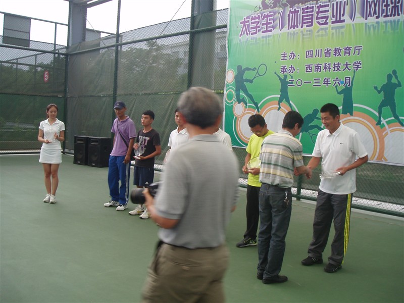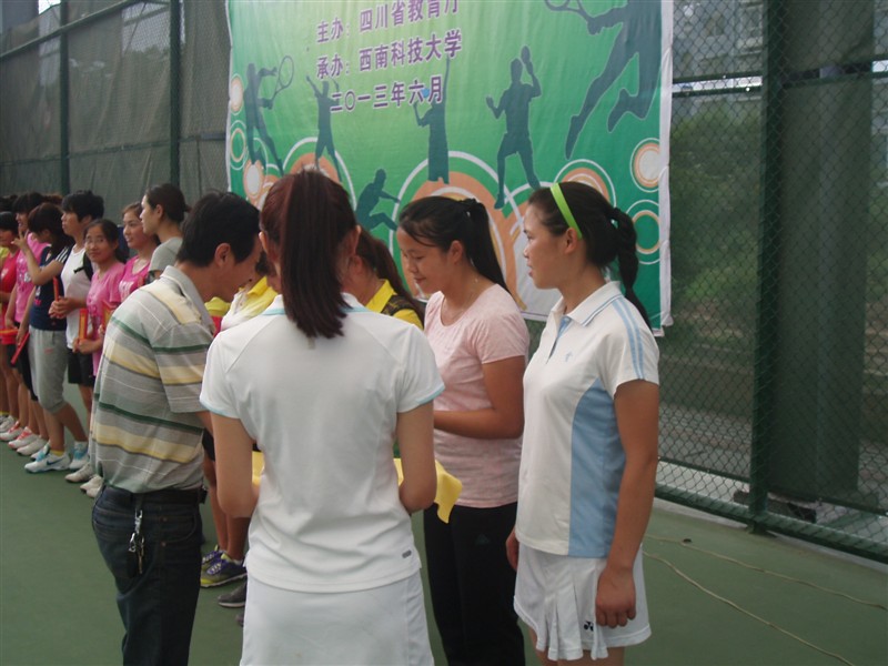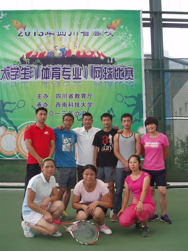 2013年四川省高校大学生(体育专业)网球比赛于5月31日至6月2日在西南科技大学隆重举行。我校万象城娱乐awc线路8名学生在冯其明老师的带领下参加了此次网球比赛。我校参赛队员们不负众望,首次参加网球比赛,便取得了团体总分第五名的优异成绩。