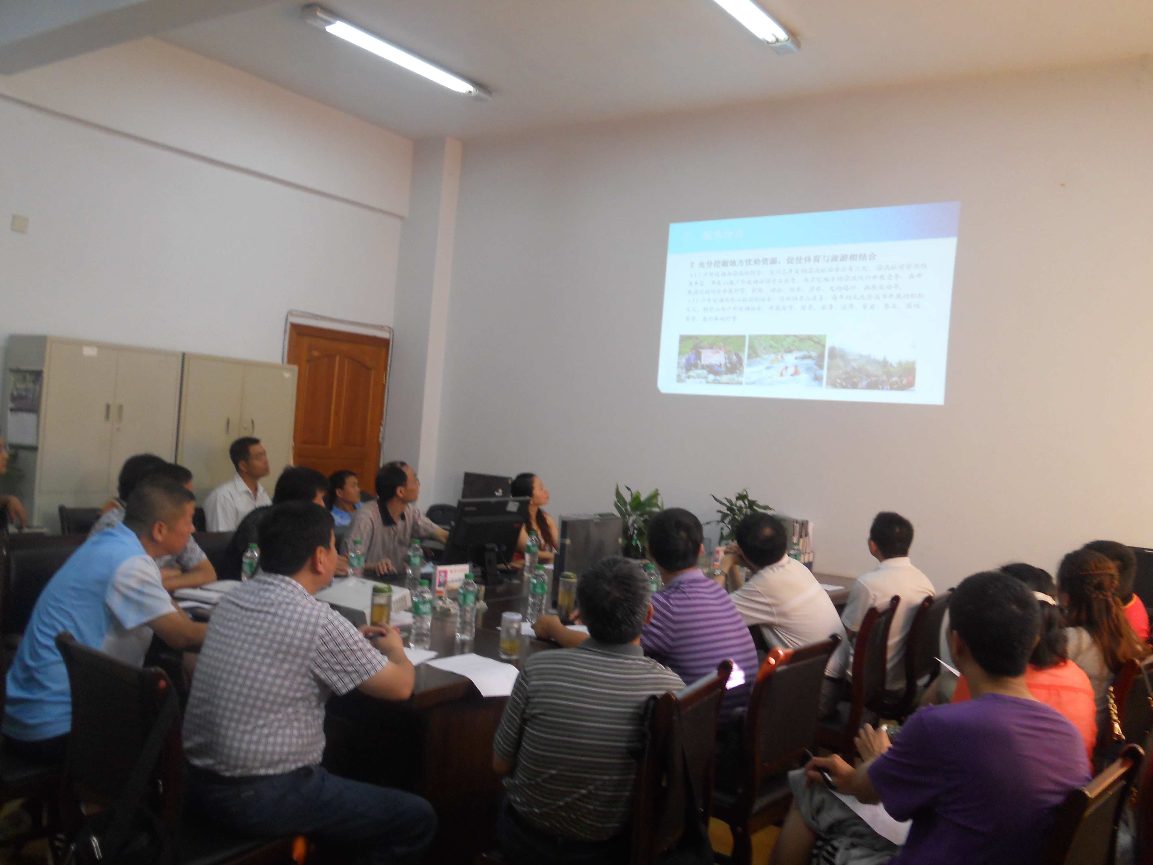 座谈会上,董主任代表万象城娱乐awc线路致欢迎辞,并简要介绍了本院的基本概况。安康学院的冯德学主任主要介绍了该系的师资力量、科研研究、学生工作管理等方面的基本情况。董主任还就我院迎接教育部合格评估的各阶段准备及实施工作做了介绍。会议结束后,在我院领导和老师们的陪同下,安康学院的考察团全体成员参观了我院教学工作和学生工作的办公室、实验室等,重点翻阅了我院的材料档案。在一对一的交流中,陈碧述副主任主要就我院在迎接本科教学合格评估工作中的经验进行了深入的介绍,包括试卷与毕业论文的规范、教学大纲的审定、档案材料的整理等具体事项。佘涛书记就迎评的相关工作进行补充,强调突显特色、放大亮点,做好各类体育赛事的管理与归档工作。