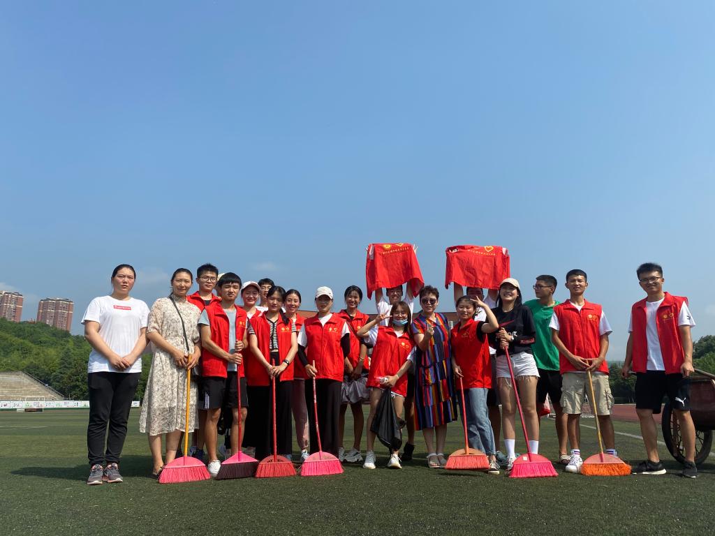 上午九时起,志愿者们携带抹布、扫帚等工具相继去往篮球场、羽毛球场、田径场开展活动。大家清理了运动场的垃圾,整理了场地内的杂物,拔掉了绿化带的杂草。对篮球架、足球门框、乒乓球台进行了清洗,对场地部分内湿滑地进行了简单处理,把场地上的乒乓球台进行了归正摆放。志愿者们不怕苦、不怕累、不怕脏,在灼热的阳光下工作了近3小时,运动场地及周围的环境得到了明显改善。