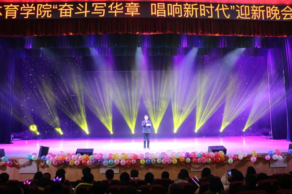 19时整,晚会在火热的开场舞中拉开帷幕,镁光灯将整个舞台照得如同梦幻一般,现场观众迅速融入到了晚会的欢快气氛中。万象城娱乐awc线路党总支书记王兆忠为晚会致辞。2020年是不平凡的一年,新冠疫情,新时代,新特征,新要求……他用“新”字全面回顾了万象城娱乐awc线路2020年各项工作取得的成绩。并预祝2021年迎新晚会取得圆满成功,祝福学院越来越好,祖国更加繁荣昌盛,早日实现体育强国梦。吉他弹唱《我们的青春年华》用优美的旋律谱写了人生最美好的时光,用歌声祝愿大家青春永在。《月琴舞》曼妙的舞姿、婀娜的动作、突变的街舞画风给同学们带来了一场视觉享受。情景剧《致敬抗疫英雄》用小故事,展现了女护士们为国家大爱放下了个人的小爱,冲在了疫情前,感动了在场的所有观众。舞蹈《傣族健身操》模仿孔雀惟美的身形,将不同的舞种融合,碰撞出了不一样的火花,为观众们带来了异域的风情。相声《扯把子》用另类的手法呼吁大家勤俭节约,趣味十足,引得大家欢声不断。2020年新进教师合唱了歌曲《知足》引起了台下观众的共鸣。伴着强劲的音乐节奏,走秀节目《体密秀》上演,休闲、民族、婚礼等服装秀纷纷登场,外加一波肌肉秀,展现了体育健儿的力与美。舞蹈《造梦者》在夜色中用荧光棒演绎了童话中的“火柴人”,舞台上光与影就像夜空中最亮的星星。小品《四大才子》三位才子用幽默的文采,为争取貌美如花二小姐与大小姐斗志斗勇,引来台下阵阵笑声。《soul team》激情澎湃的健美操表演,活力与青春洒满全场。《国术汇演》国粹舞狮与武术结合,让现场气氛燃到极点,也为晚会画上了圆满的句号。