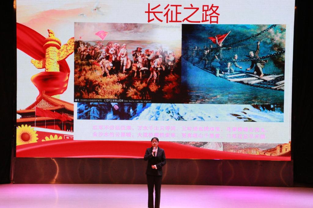 经各班初赛推荐,团总支学生会组织复赛,最终有10位同学进入本次决赛。在比赛中选,手们精神饱满、感情充沛、自信十足。《强健体魄,传承红心》表达了广大学子努力学习,强健体魄,传承革命精神的决心;《与党同行》描绘了党从无到有、从小到大、从弱到强的壮美诗篇;《不忘初心,继往开来》展现了中国共产党带领全国各族人民不畏艰辛、科学谋划、攻克难关,取得了脱贫攻坚战全面胜利的伟大历程;《巴山军魂》讲述了红军战士血战巴山,不畏艰苦、不畏牺牲的精神品质;《金色的鱼钩》叙述了长征途中一位炊事班班长接受并完成党组织交给的任务,照顾三个生病的小战士过草地,而牺牲了自己的故事,表现了红军战士忠于革命、舍己为人的高贵品质……经过激烈的比赛,20201班朱梦婷,20191班唐悦两位选手并列获得此次比赛第一名。