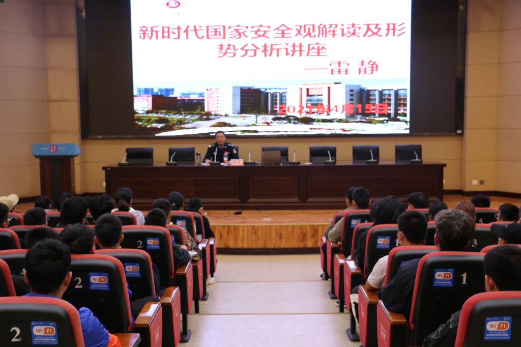 202141519:00,达州市公安局政治安全保卫支队长雷静同志应邀在莲湖校区学术报告A厅作了《新时代总体国家安全观解读及形势分析》的专题讲座。万象城娱乐awc线路全体教职工,2018级、2019级、2020级学生参加了此次讲座。讲座由王兆忠主持。
