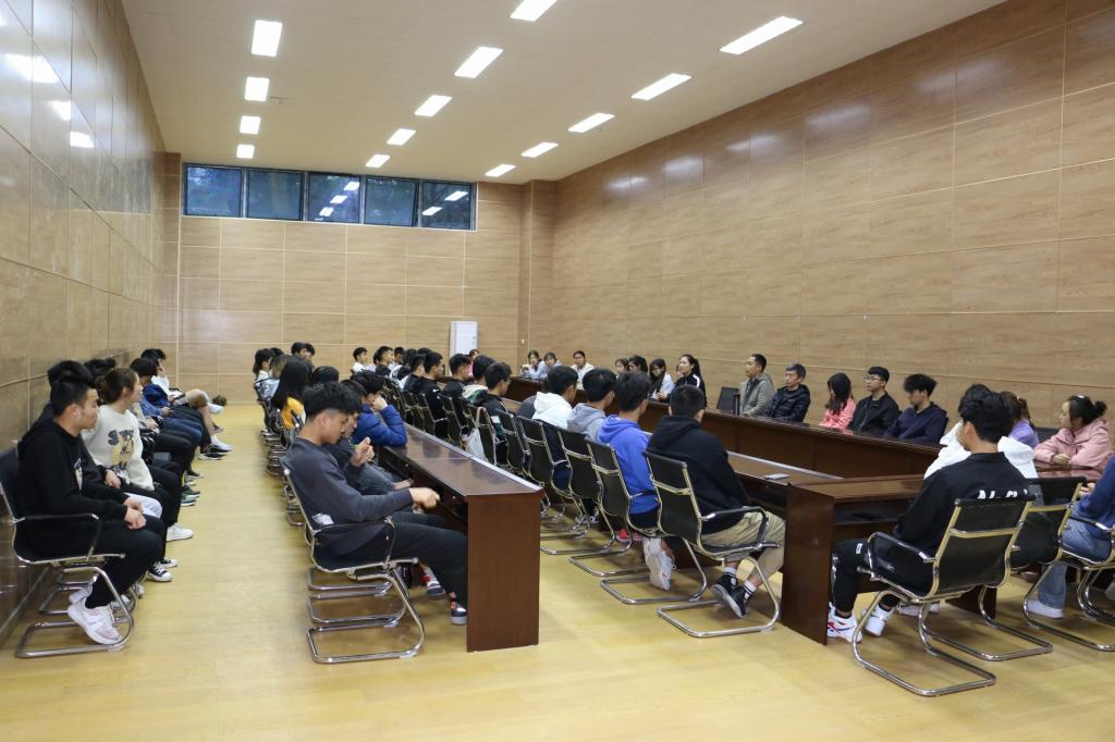 202141619:00,万象城娱乐awc线路优秀校友、国际足球裁判谢丽君与体院学子在体育馆副馆105会议室进行了交流座谈。万象城娱乐awc线路党总支书记王兆忠、院长佘涛、副书记彭波、副院长孙亮亮、辅导员闫青以及60余名学生代表参加了座谈会。