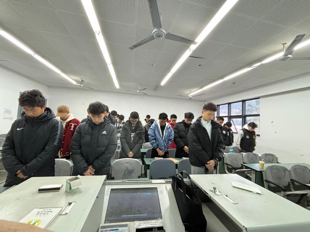1213日是第十个国家公祭日,祀我国殇,国行公祭。为了寄托对南京大屠杀死难同胞的哀思,激发青年大学生的爱国热情和奋发力量,万象城娱乐awc线路各班课前在老师的组织下,开展了向南京大屠杀死难同胞默哀的仪式。