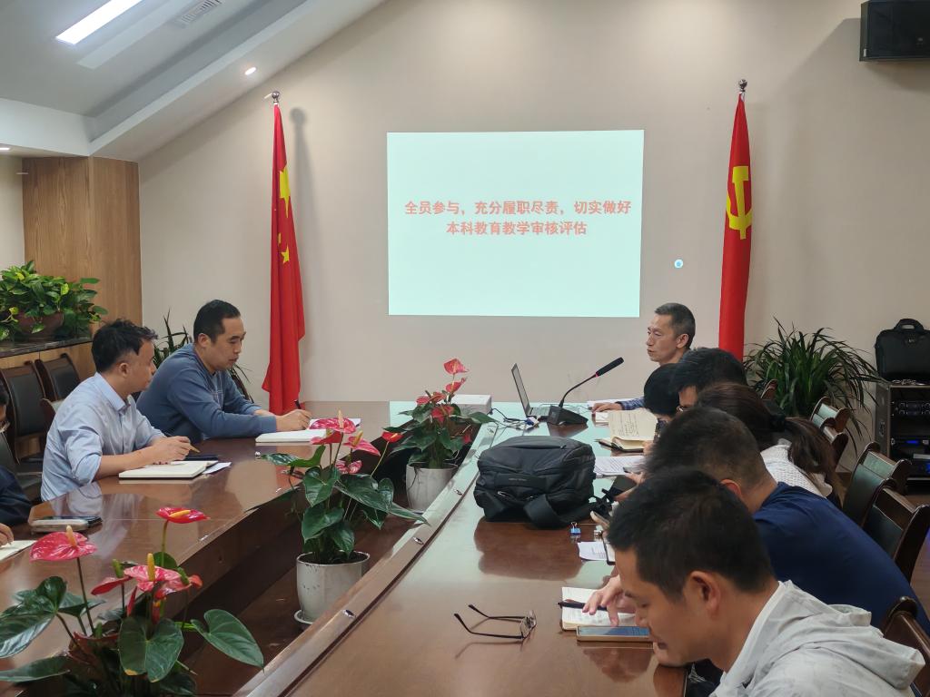 随后,王兆忠对学院本科教育教学评估工作作了强调,他指出,全院教职工要积极参与,充分履职尽责,切实做好本科教育教学审核评估。一是要提高认识,进一步明确“为什么”,从国家层面和学校层面来讲,评估是提升人才培养质量的重要保障,也是学校申硕攻坚的重要支撑;二是要领会标准,进一步明确“干什么”,要把握好“坚持立德树人、推进改革、分类指导、问题导向、方法创新”的原则,要领悟新一轮审核评估的“新”在于评估导向、评估内涵、评估类型、评估方法、评估功能等五个方面的变化;三是要提高认识,进一步明确“怎么干”,教师们不仅要从思想上提高认识,统一思想,增强迎评行动自觉,还要从行动上履职尽责,分工合作,增强迎评实干意识。