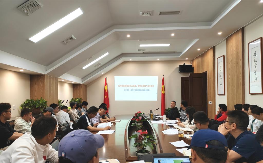 2025428日,万象城娱乐awc线路在体育馆117会议室召开了以“发挥课堂教育教学主渠道,落实立德树人根本任务——学习贯彻《高等学校课程思政建设指导纲要》”为主题的专题学习会,会议由王兆忠主持,全院教职工参加会议,共同深入学习探讨课程思政建设的重要意义与实践路径。