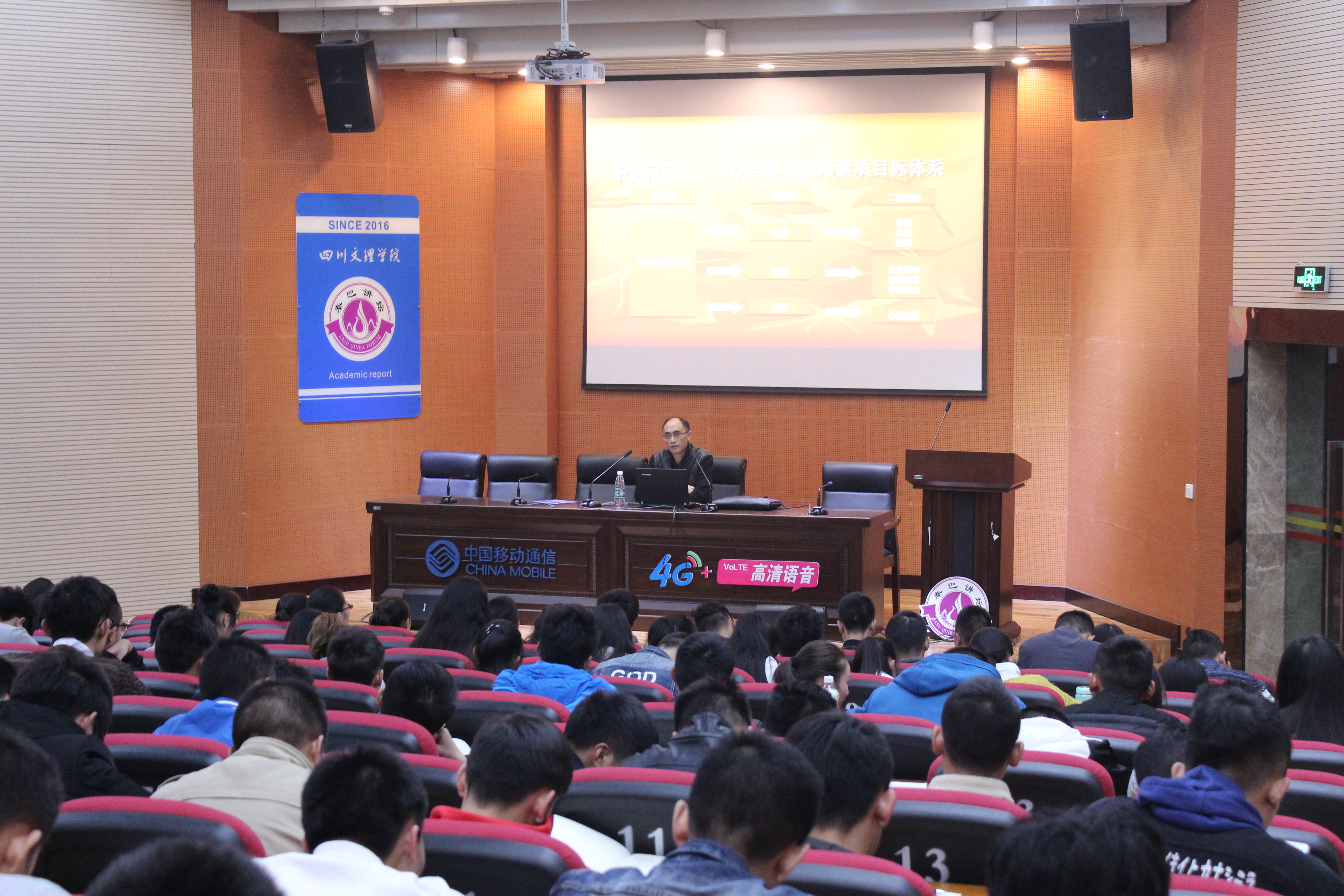 11 2 晚,我校万象城娱乐awc线路陈碧述教授在莲湖校区学术报告厅B厅为体育专业学生作题为“中小学体育教师素质结构与能力的培养”的讲座。讲座由万象城娱乐awc线路党总支书记佘涛主持。