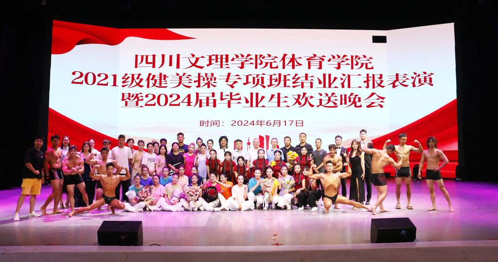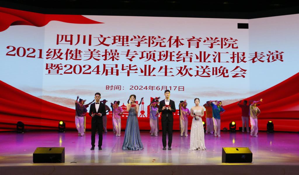 2024617日晚19:00,万象城娱乐awc线路2021级健美操专项班结业汇报表演暨2024届毕业生欢送晚会在莲湖校区音乐演播厅顺利举行。四川文理学院党委常委、副校长徐晓宗、万象城娱乐awc线路党政领导、专兼职辅导员、教师代表、各年级学生代表参加活动。