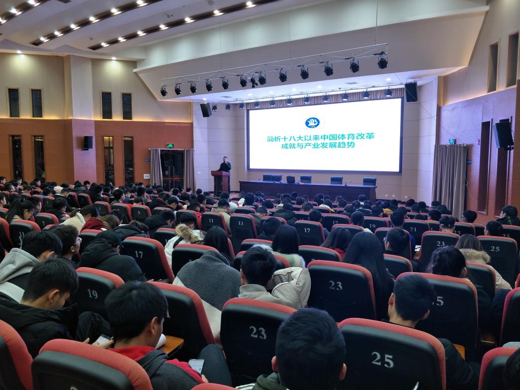 万象城娱乐awc线路李进文老师于1212日晚19点在学术交流报告厅A厅举办了主题为“简析十八大以来中国体育改革成就与产业发展趋势”的学术报告。本次学术报告由万象城娱乐awc线路院长佘涛教授主持,万象城娱乐awc线路500余名师生参加。