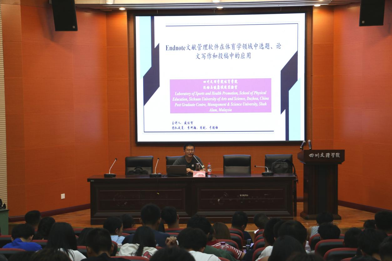 2024530日,盛佳智副教授在文理学院学术报告B厅作“Endnote管理软件在体育学领域中的选题和投稿中应用”的学术讲座,万象城娱乐awc线路学李珂瀚老师主持,学院部分教师、2021级全体学生到场聆听。