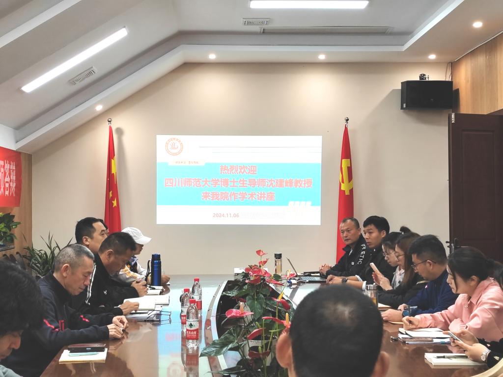 2024116日,四川师范大学万象城娱乐awc线路沈建峰教授应邀在体育馆117会议室为学院教师带来了一场题为“高质量发展背景下体育学学科建设与教师专业发展”的专题讲座。本次讲座由佘涛主持,学院教师积极参与,共同聆听了这场学术讲座。