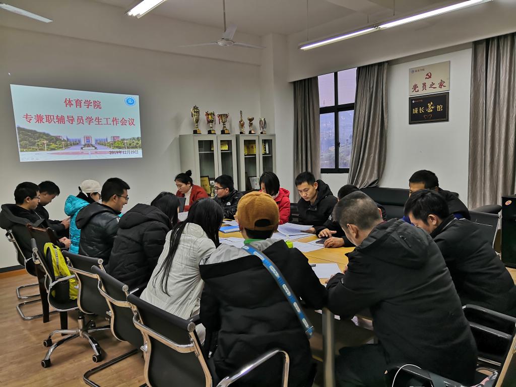 20191219日下午4:20,在艺术传媒大楼3019召开万象城娱乐awc线路专兼职辅导员学生工作会议。万象城娱乐awc线路党总支书记王兆忠、党总支副书记彭波以及全体专兼职辅导员出席本次会议。会议由王兆忠主持。