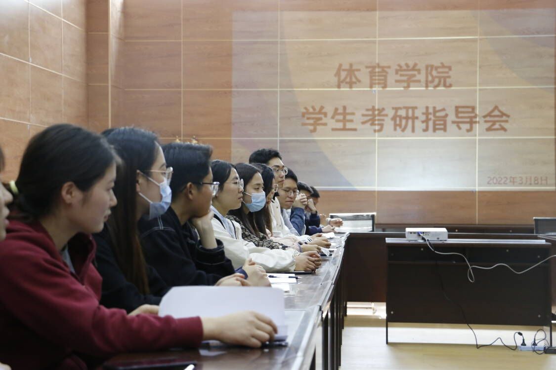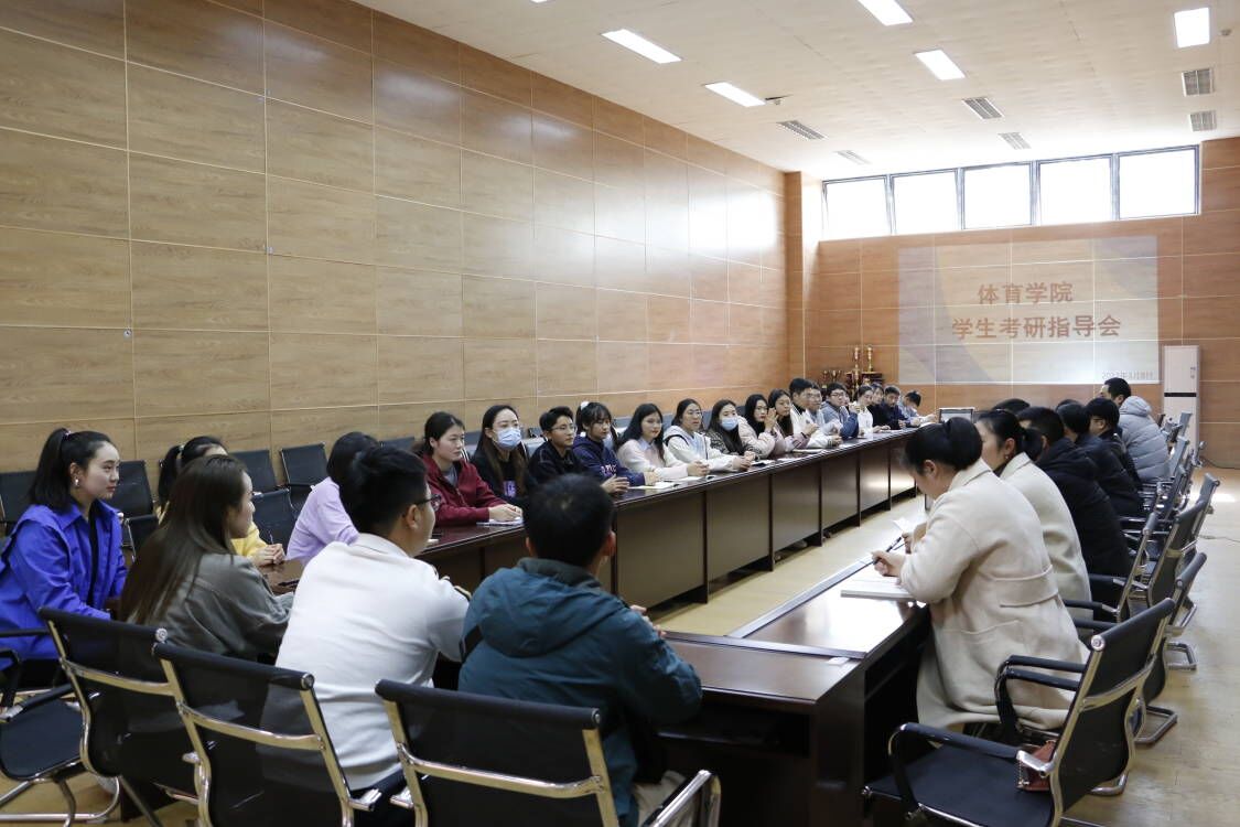 38日,万象城娱乐awc线路在体育馆附馆105召开考研学生指导会。体育学院院长佘涛,党总支副书记彭波,副院长孙亮亮,组织员卫洪春,党政办公室主任樊永强,学工办主任祝利平,专任教师盛佳智,辅导员石姣娜以及22位考研学生参加了本次座谈会。会议由祝利平主持。