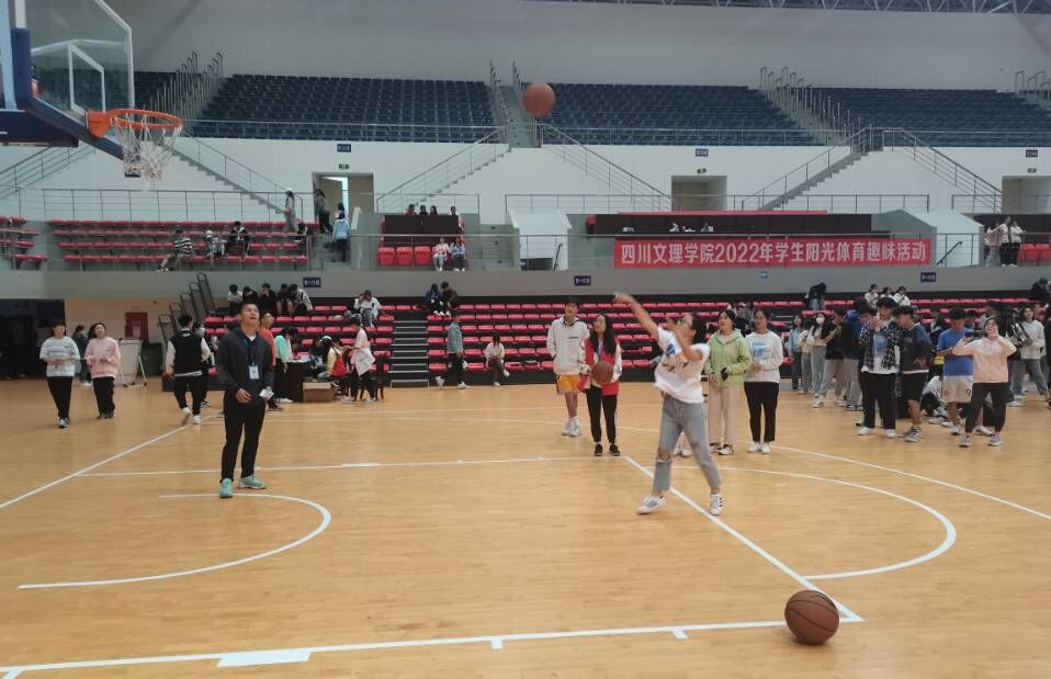 2022427-28日,四川文理学院2022年学生阳光趣味运动会在体育馆羽毛球场圆满完成所有项目。本次趣味运动会包含环校趣味打卡跑、个人跳绳、保龄球、个人投篮、袋鼠跳、传递呼啦圈共六项。