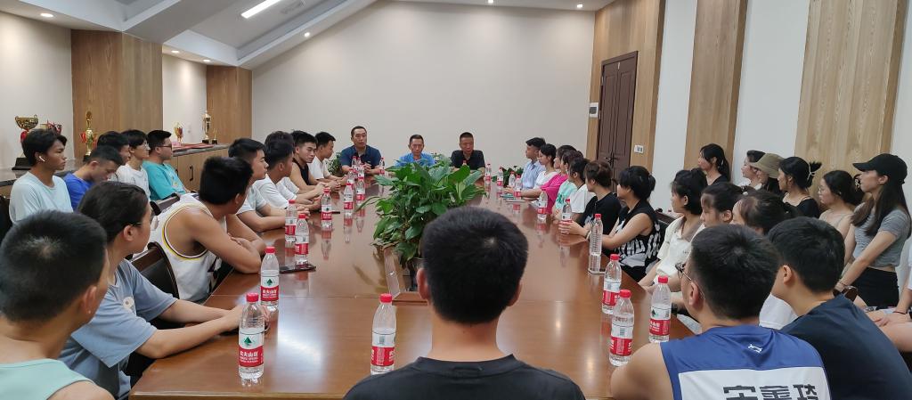 炎炎夏日,酷暑难耐。202282411时,万象城娱乐awc线路党政领导及辅导员老师在体育馆117会议室召开座谈会,对万象城娱乐awc线路暑期留校考研学生送去了关怀和鼓励。