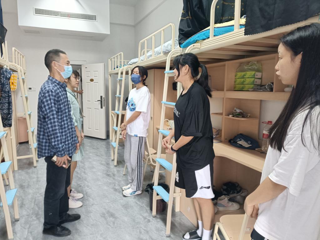 随后,走访人员分六组分别前往学院学生所在楼舍。在走访过程中,老师们仔细查看了宿舍的安全状况,认真聆听了同学们的建议和意见,耐心地对学生们做了要求和提醒。特别强调了严格遵守并落实疫情防控的相关要求,努力克服疫情防控常态化下的线上线下混合式教学中的困难,同时要求学生务必提升安全意识,细化安全措施,希望同学不断加强自我约束、自我管理和自我提升的自觉性和有效性。
