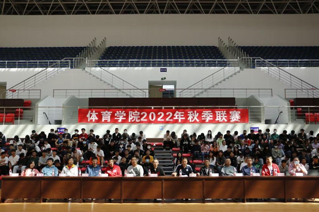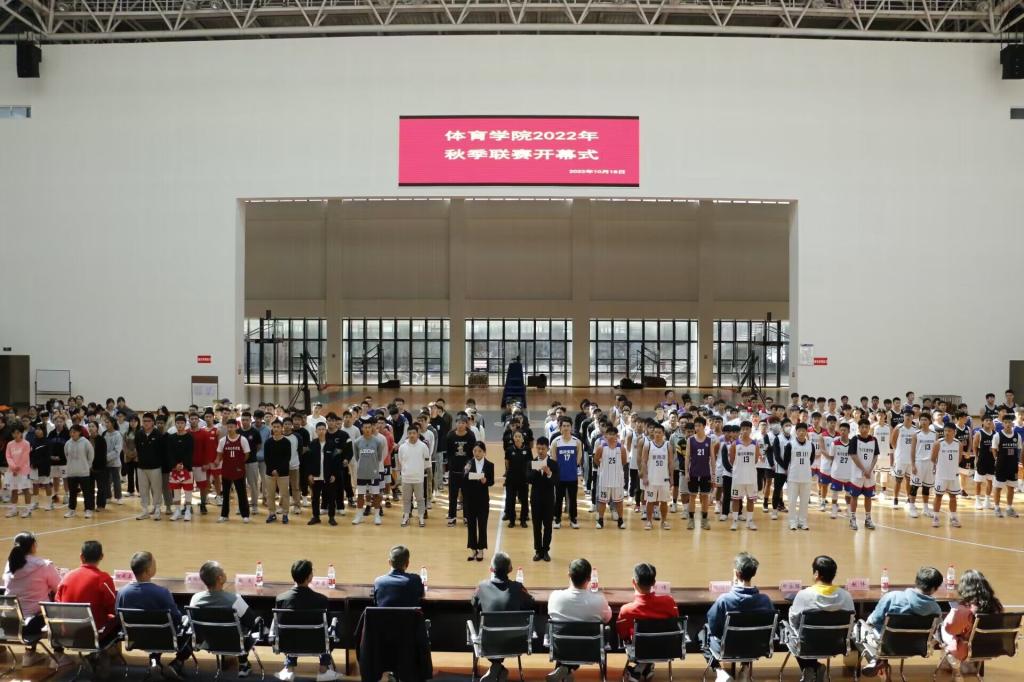 2022101812:30 万象城娱乐awc线路2022年秋季联赛在体育馆拉开帷幕。万象城娱乐awc线路党总支书记王兆忠,院长佘涛,副院长孙亮亮,组织员卫洪春,篮球、排球、羽毛球、乒乓球专项教师代表,专职辅导员,2022级和2021级学生以及参赛运动员代表参加开幕式。