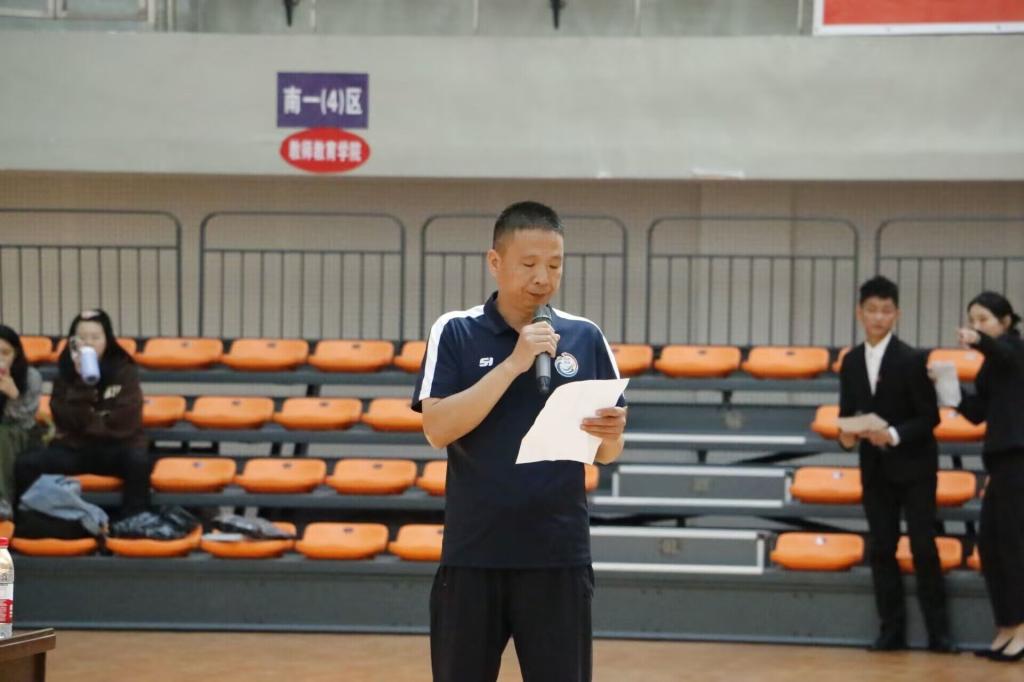 随着音乐响起,武术专项班的同学们在篮球场上用一套套行如流水的武术动作,为开幕式暖场。随后,院长佘涛致开幕辞。他提到,为了认真落实习近平总书记把“三大球”搞上去的指示,万象城娱乐awc线路秉承教会、勤练、常赛的宗旨举办2022年秋季联赛,旨在丰富校园文化生活,提高学生的运动技术水平,健全学生人格,锤炼学生意志,培养学生吃苦耐劳、坚韧不拔的精神。他提出三点希望:一是希望同学们能够认真对待比赛,补齐短板、强化弱项、强固底板、展示优势;二是希望全体学生裁判认真执裁,做到公平公正,提升执裁水平;三是希望参赛运动员文明参赛,观众文明观赛,赛出友谊,赛出水平。裁判员代表、运动员代表分别进行了宣誓。最后,党总支书记王兆忠宣布万象城娱乐awc线路2022年秋季联赛开幕。