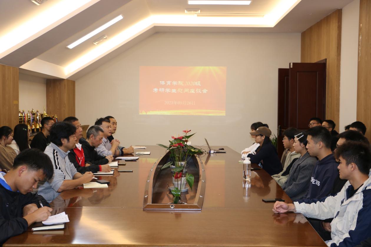2023926日下午4:30,万象城娱乐awc线路在体育馆117召开了2020级考研学生慰问座谈会。学院党政领导、党政办主任、学工办主任、教授代表、专兼职辅导员以及2020级考研学生参加座谈。