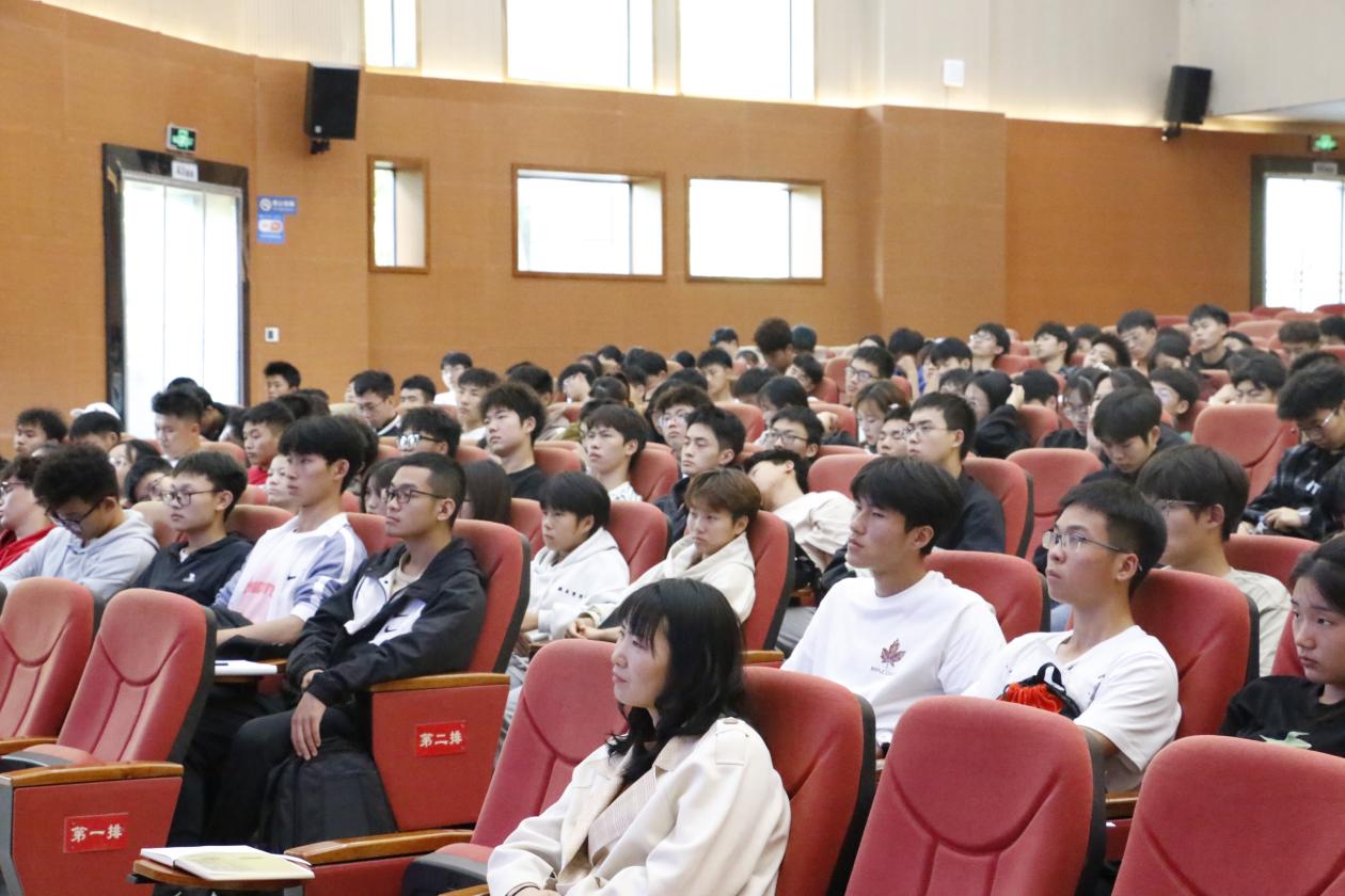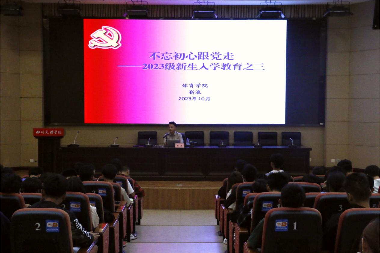 20231013日下午1点,万象城娱乐awc线路在学术报告厅A厅开展了以“不忘初心跟党走”为主题的新生入学教育讲座。学院党委副书记靳浪担任主讲,学工办主任祝利平、辅导员李波以及2023级全体新生参加讲座。