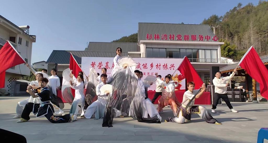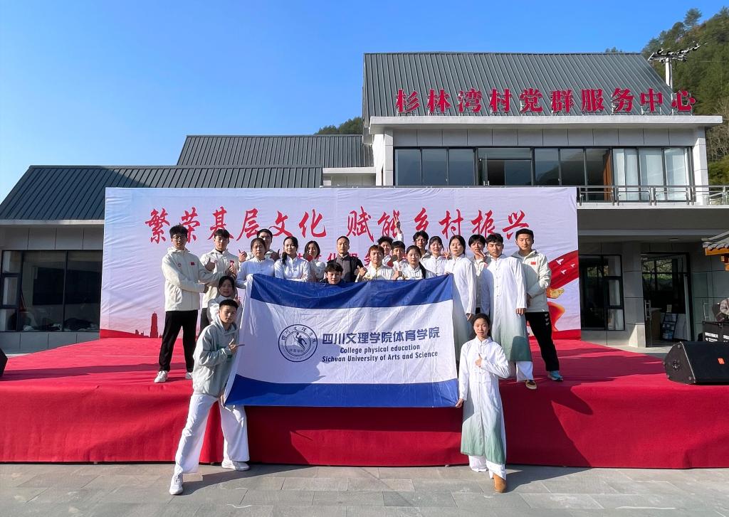 学院高度重视,就万源石塘镇杉林湾村托底帮扶志愿活动顺利推进举行了专题会议,确定了参演方案、节目及负责人,并提出了“确保安全,确保质量”的要求。武术教研小组随即行动起来,选拔队员,组织排练。111日,万象城娱乐awc线路武术队正式前往万源市石塘镇杉林湾村开展了“繁荣基层文化,赋能乡村振兴”的传统体育文化展演。本次活动由李波老师带队,由杨慧、蒲黔蜀等20名学生参与。