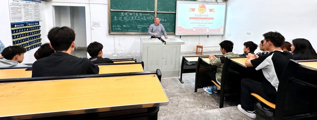徐晓宗全程观摩了“坚定四个自信”主题团会开展情况,认真听取了学生关于学习生活与班团建设的汇报。他对本次主题团会给予了充分肯定,强调了“四个自信”的历史背景和重要意义。他要求同学们要文明其精神,野蛮其体魄,做体育引领者,以“三走”活动为契机,带动学校其他专业学生积极参与锻炼,营造浓厚的锻炼氛围,全面提升身体素质。最后,他通过分享成功人士的故事,引领同学们深刻理解“天将降大任于斯人也,必先苦其心志,劳其筋骨,饿其体肤,空乏其身。”的内涵,鼓励同学们多参加各类活动,虚心学习,热爱集体,脚踏实地,共同成长,全面提高综合素养。