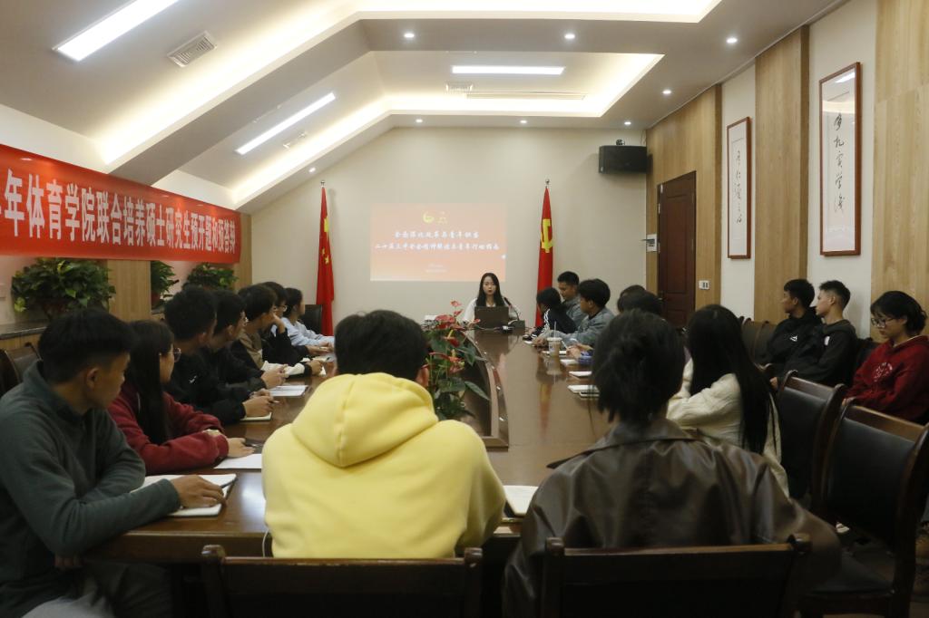 2024 11 7 18:50,团总支在体育馆 117 会议室召开了青马班第一期“青马燎原”宣讲会,青马工程培训班学员蒲黔蜀担任主讲人,万象城娱乐awc线路全体团学干部参加宣讲。