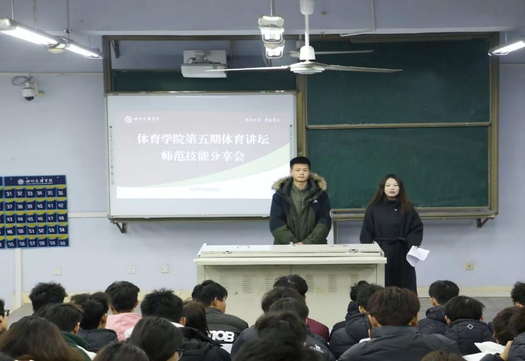 20241219日中午12:00,万象城娱乐awc线路第五期体育讲坛在博文楼213214开讲,2021级学生党员江旭日、邓程稀担任主讲,2024级全体学生参与,专职辅导员李波出席活动。
