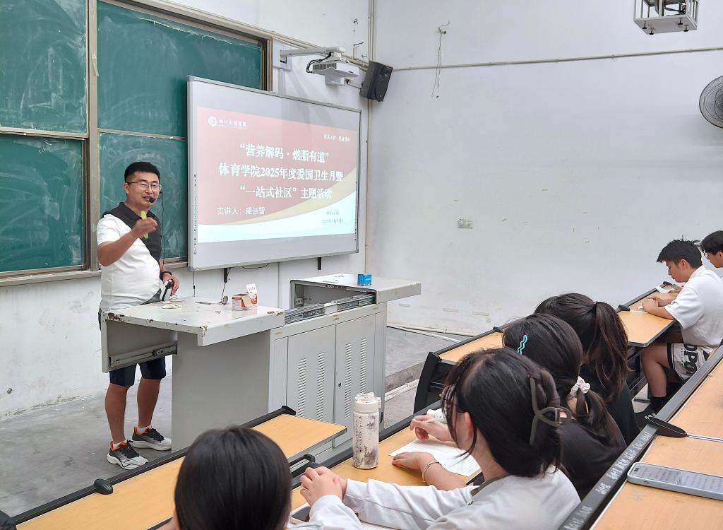 57-8日晚,“活力燃脂,健康校园”——活力有氧减脂运动率先开展。王京老师在体育馆健身房开展器械训练指导,系统讲解热身激活、肌群发力等技术要点;唐绪明老师在健美操课程中示范规范动作,现场纠正常见运动误区,传授居家健身方法,为师生们打造了一份科学的健身方案。513日晚,盛佳智老师在艺术传媒大楼举办专题讲座,围绕BMI、体脂率等核心指标解析健康管理方法,介绍科学饮食搭配原则,指导不同群体制定个性化运动方案。引导师生关注体态健康,树立“合理运动+科学饮食”理念,为师生们送上了一份专属的健康管理指南。