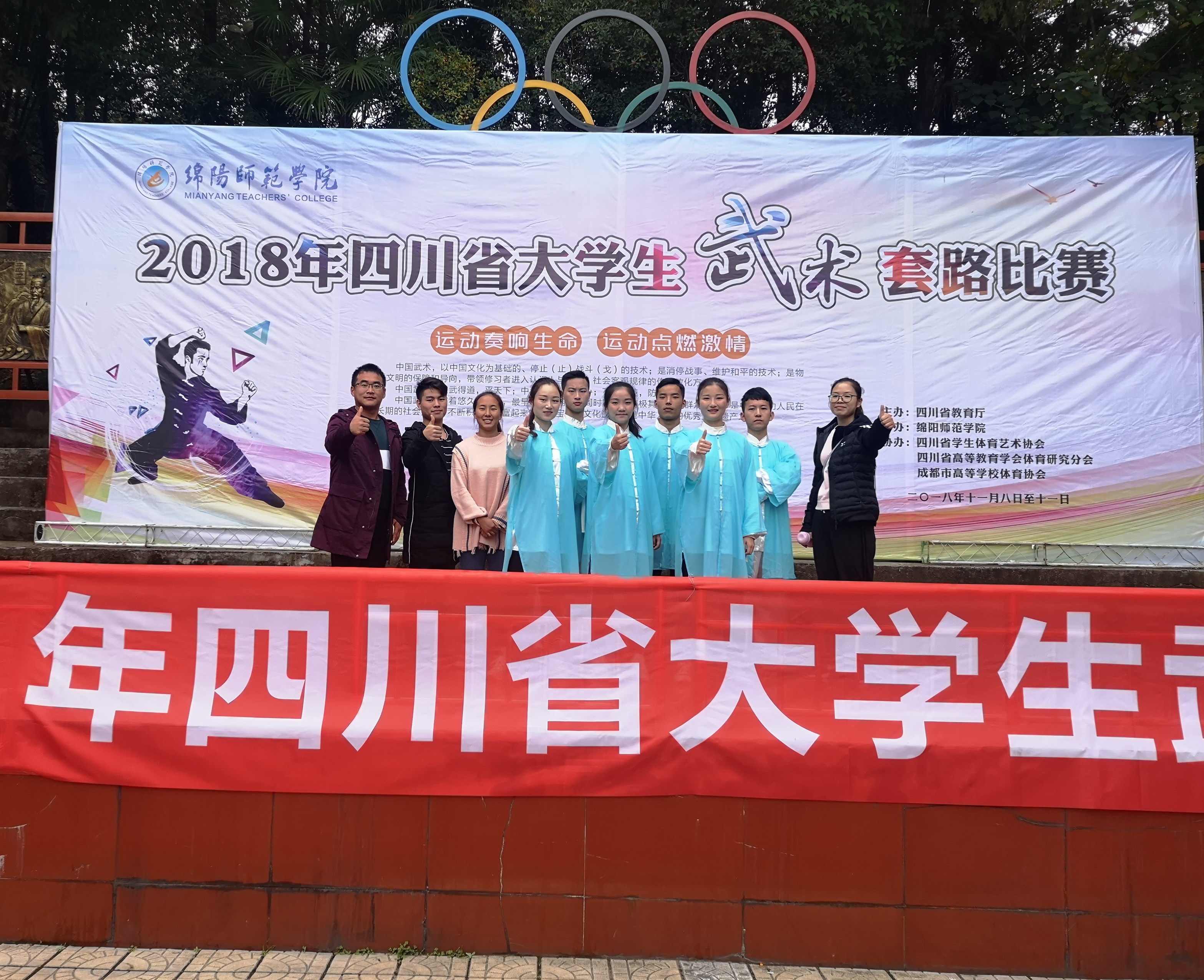 11月8日-10日,四川省大学生武术套路比赛在绵阳师范学院举办。此次比赛由四川省教育厅主办,四川省学生体育艺术协会、四川省高等教育学会体育研究分会、成都市高等学校体育协会协办。