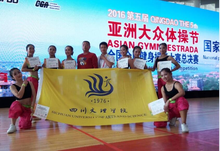 万象城娱乐awc线路健美操队在冉卫东老师的指导下,历经两个多月的刻苦训练,克服了高温天气,暑假坚持训练。在比赛中与北京体育大学、武汉万象城娱乐awc线路等高校同台竞技,获得了体育院校组有氧健身操二级一等奖、有氧健身操六级一等奖、轻器械健身操五级一等奖、普通院校组成年组轻器械四级一等奖。