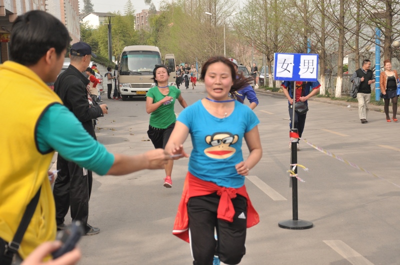 下午3时,随着体育系陈碧述副主任的发令枪响,近600名学生在校门口如离弦的箭一跃而出,你追我赶。从学院莲湖校区校门口到莲湖宾馆,全程约9公里,途中道路弯曲、坡度大,坚持跑完全程对同学们的身体素质、竞争意识、拼搏精神和心理承受能力都是一次严峻的考验。比赛中,同学们毫不畏惧,个个精神振奋、激情昂扬。在途中设立了多个服务点,体育系的老师及志愿服务同学热情地为参赛人员服务。