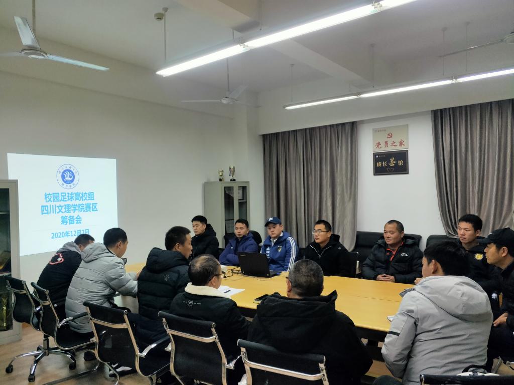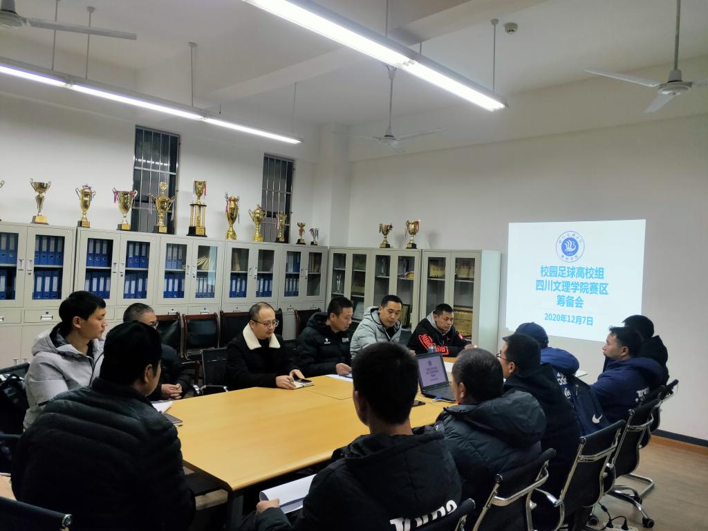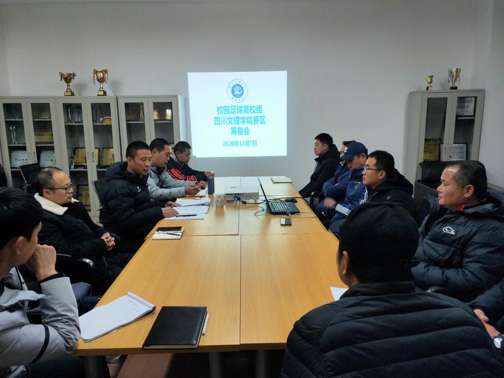 进一步认真贯彻四川省教育厅开展普通高校高水平足球运动队联赛工作,2020127日下午,万象城娱乐awc线路召开校园足球高校组四川文理学院赛区筹备会。万象城娱乐awc线路院长佘涛、党总支副书记彭波、副院长孙亮亮以及系列骨干教师参加本次会议。会议由佘涛主持。