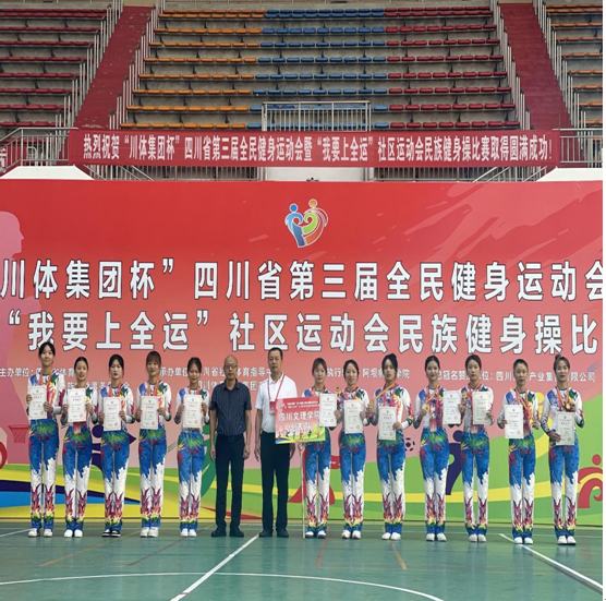 2021年“川体集团杯”四川省第三届全民健身运动会暨“我要上全运”社区运动会于919日落下帷幕。在教练员冉卫东,李慕怡的悉心指导下,队员们经过近一个月的艰苦训练,我院参赛队在与各地级市10支代表队角逐中脱颖而出,取得佳绩,获得民族健身操规定套路B组一等奖。
